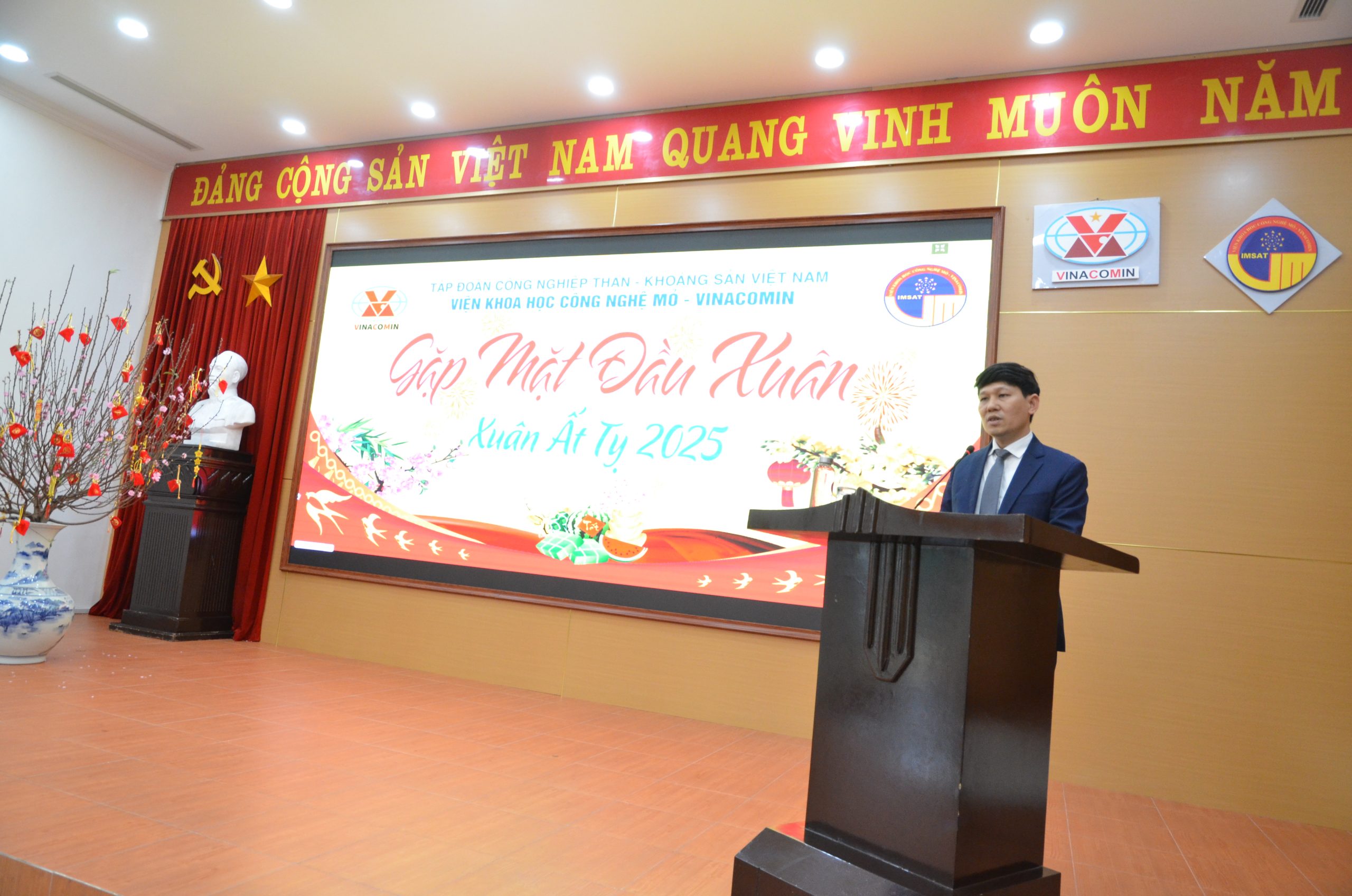 Sáng ngày 03/02/2025 (tức ngày mồng 6 Tết Ất Tỵ), trong không khí tưng bừng, ấm áp của những ngày đầu xuân mới, Viện Khoa học Công nghệ Mỏ tổ chức gặp mặt Khai xuân Ất Tỵ năm 2025 theo hình thức trực tiếp và trực tuyến, kết nối với điểm cầu tại Trung Tâm An toàn Mỏ. Đồng chí Đào Hồng Quảng – Bí thư Đảng ủy, Viện trưởng chủ trì Buổi gặp mặt.